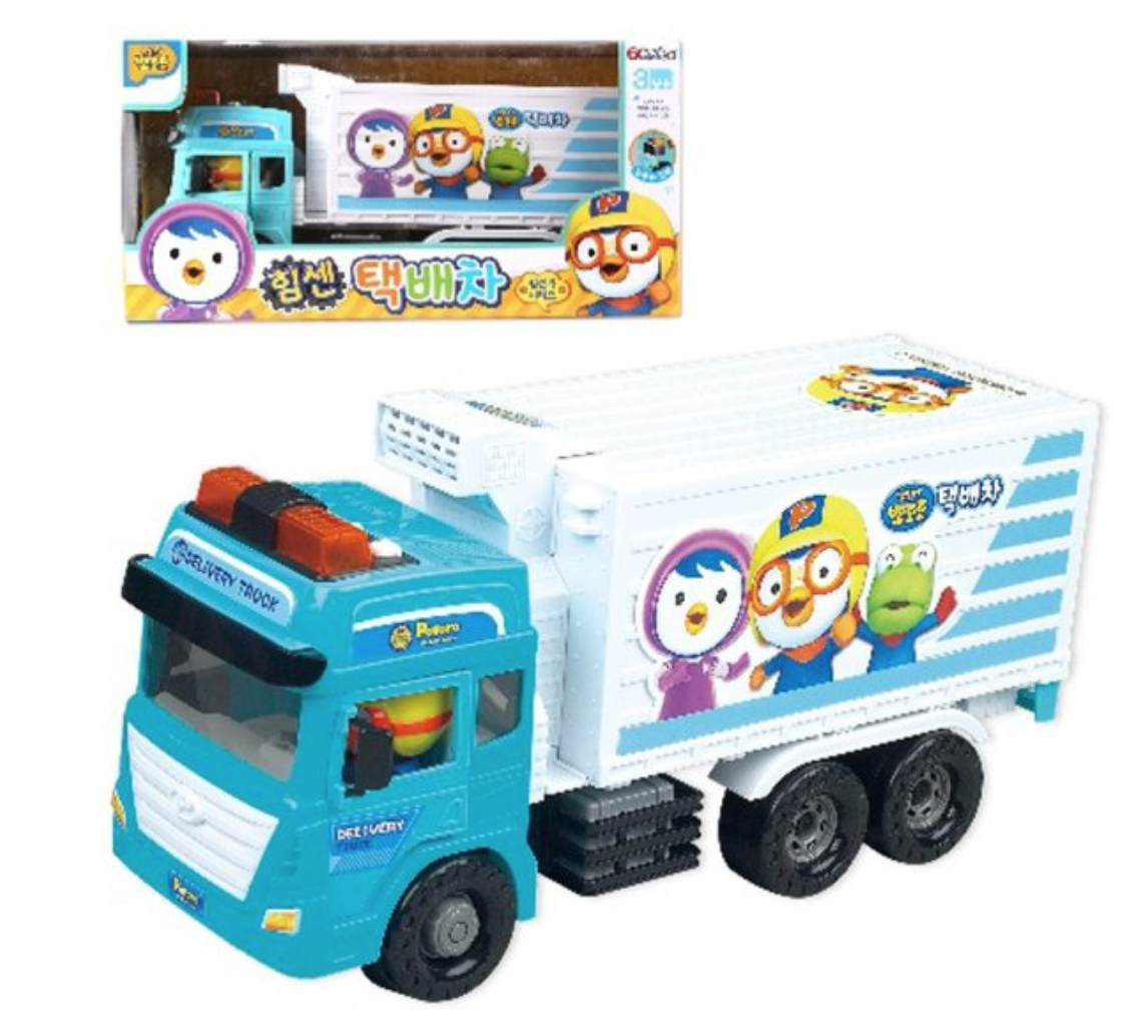 뽀로로에 다양한 자동차 시리즈가 있습니다. 덤프트럭과 레미콘 등 저도 지인들에게 선물 받았었는데요. 요즘 아이들도 택배 아저씨는 다 알고 있는 시대입니다. 그래서 그런지 택배차도 재밌어했습니다. 화물칸에 피규어 장난감을 넣거나 다른 작은 장난감을 넣었다 뺐다 하며 잘 가지고 놉니다.